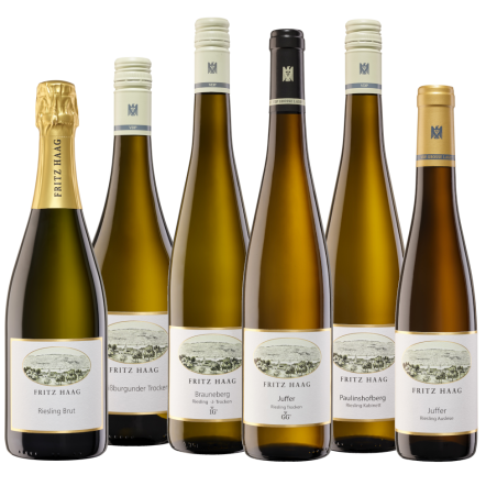 Unser Paket für jede Gelegenheit, vom klassischen Gutswein, über eine Auslese 'Goldkapsel' aus GROSSER LAGE, bis hin zu unserem Riesling Sekt Brut.